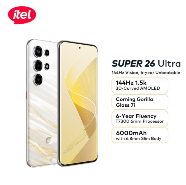 مواصفات هاتف itel Super 26 Ultraوبحسب ما ذكره موقع “gizmochina”، يعمل هاتف itel Super 26 Ultra بمعالج Unisoc T7300 المصنع بتقنية 6 نانومتر، ويستخدم نظام IceCool Tech المكون من 10 طبقات للحفاظ على أداء مستقر.