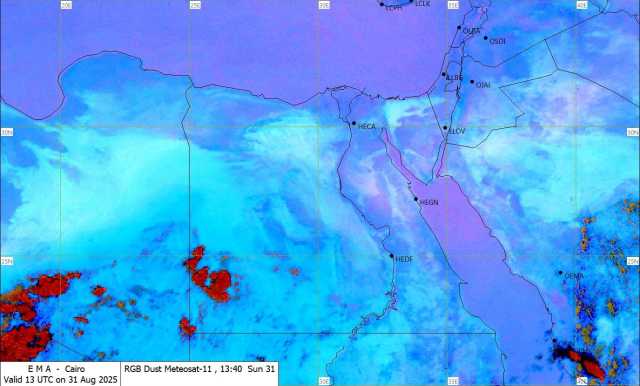 أشارت آخر صور الأقمار الصناعية إلى تكاثر السحب الرعدية على حدونا الجنوبية الغربية جنوب محافظة الوادي الجديد يصاحبها سقوط أمطار متفاوتة الشدة.
