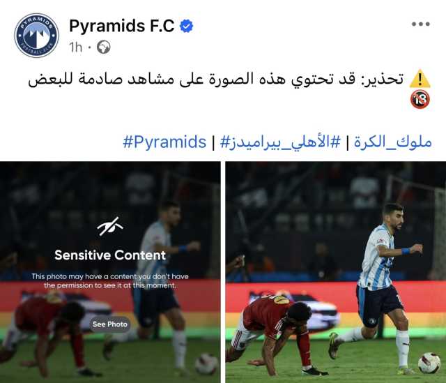 ونشرت الصفحة الرسمية لقطات من مباراة الأهلي و بيراميدز و علقت كاتبة: تحذير قد تحتوي هذه الصور على مشاهد صادمة للبعض .