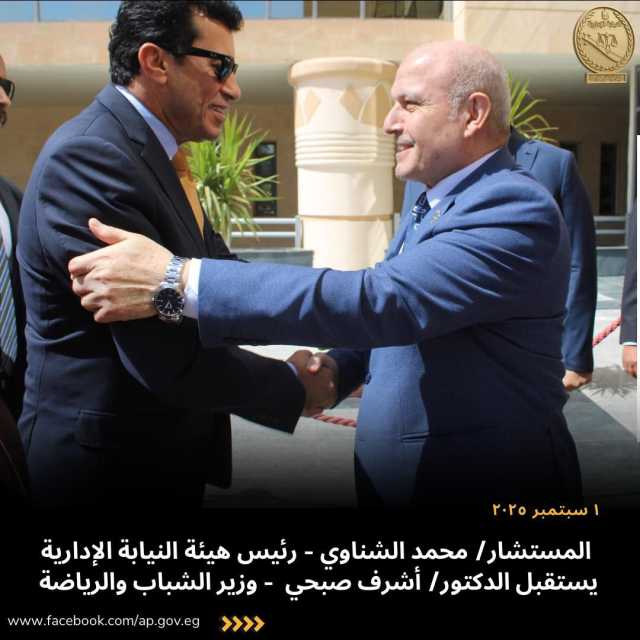 استقبل المستشار محمد الشناوي رئيس هيئة النيابة الإدارية، اليوم، الدكتور أشرف صبحي، وزير الشباب والرياضة، في زيارة جاءت للتهنئة بمناسبة توليه مهام منصبة الرفيع رئيسًا لهيئة النيابة الإدارية.