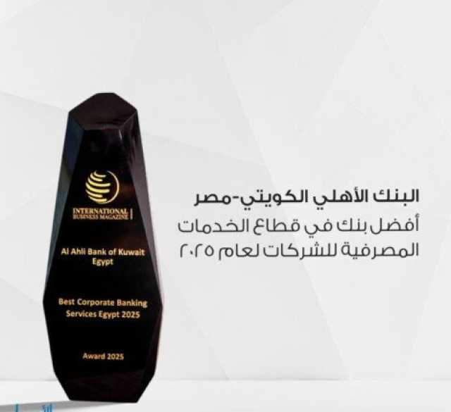 «البنك الأهلي الكويتي مصر» يحصد جائزة الأفضل في الخدمات المصرفية للشركات 2025
