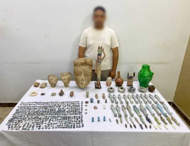 كانت معلومات وتحريات الأجهزة الأمنية قد أكدت قيام تاجر أدوات منزلية – مقيم بالمنيا – بحيازة عدد كبير من القطع الأثرية القديمة استعدادًا لبيعها. وبعد تقنين الإجراءات القانونية، تم استهداف المتهم وضبطه، حيث عُثر بحوزته على 577 قطعة أثرية يشتبه في أثريتها، شملت تماثيل، تمائم، رأس تمثال، أوانٍ، عملات معدنية، ومجسمات من الفخار.