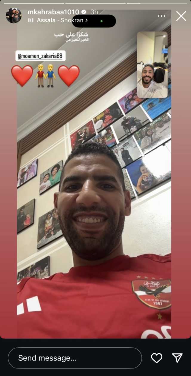 وجه محمود كهربا، لاعب نادي القادسية الكويتي، رسالة لمؤمن سليمان لاعب الأهلي السابق، عبر حسابه الشخصي على انستجرام.