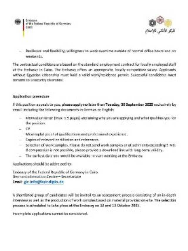 كلمات دلالية: السفارة الألمانية بالقاهرة السفارة الألمانية تصميم الجرافيك وظيفة شاغرة وسائل التواصل الاجتماعي