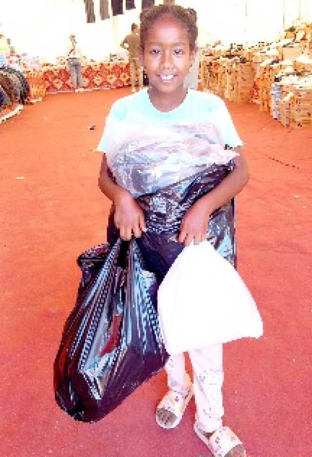 وهناك مجموعة من الأطفال يتجولون داخل المعرض فارحين بشراء مستلزمات المدارس ليستقبلون عام جديدا بفرحة وسعادة.