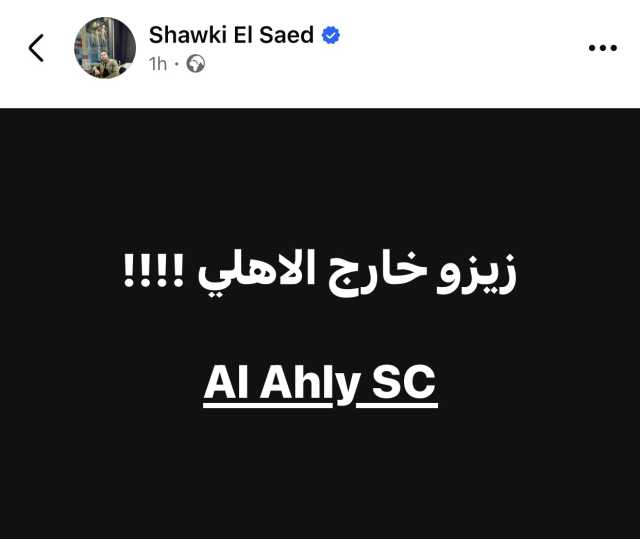 أثار شوقي السعيد، لاعب الزمالك السابق، حالة من الجدل الواسع على مواقع التواصل الاجتماعي بعد نشره منشورًا عبر حسابه الشخصي بموقع فيسبوك أكد فيه أن أحمد سيد “زيزو”، لاعب الأهلي الحالي، أصبح خارج حسابات النادي الأهلي.