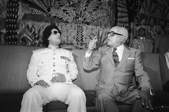 وكان وجود نموذج معمر القذافي في ليبيا جارا مُفيدا لتكبير صورته وتحقير "العسكري العربي الغبي"، وقد أتقنت ماكينةُ الدعاية استثمار الصورة السالبة لجاره لتمجيد "العقلانية البورقيبية"، ولم يُخيّب القذافي ظنّ بورقيبة، فزوّد ماكينته الدعائية بمادة دسمة.