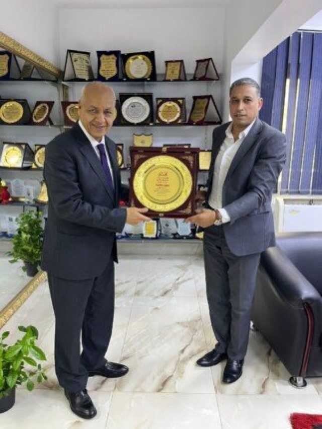 وأهداه الدرع النائب مصطفي بكري، عضو مجلس النواب، ومعه نجل الراحل الكبير محمد محمود بكري، خلال زيارة لمكتبه بمقر مديرية التربية والتعليم بالجيزة.