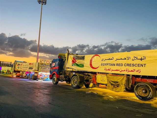 الهلال الأحمر المصري: 2700 طن مساعدات عبر قافلة «زاد العزة» الـ 29 إلى غزة