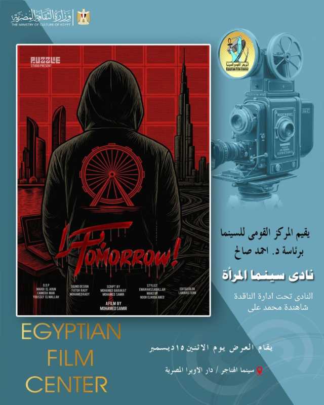 يقيم المركز القومي للسينما برئاسة الدكتور أحمد صالح فعاليات نادي سينما المرأة تحت إدارة الناقدة السينمائية شاهندة محمد علي، حيث يتم عرض الفيلم الروائي الطويل «بُكرا» في أمسية سينمائية تجمع بين الخيال والتشويق وتطرح سؤالًا وجوديًا: هل يمكن تغيير الغد دون دفع ثمن الماضي؟