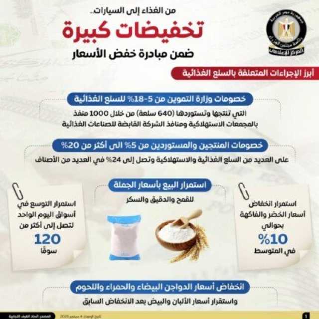 تراجع السلع الغذائية والكهربائية والسيارات.. مجلس الوزراء يعلن نتائج مبادرة «خفض الأسعار»
