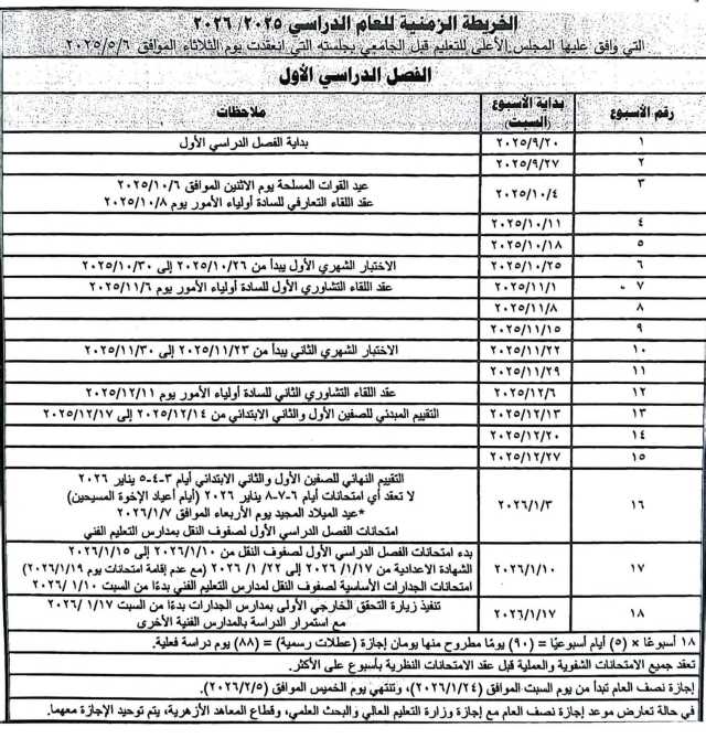 موعد بدء الدراسة في الفصل الدراسي الأول : من 20 سبتمبر 2025 لـ 22 يناير 2026