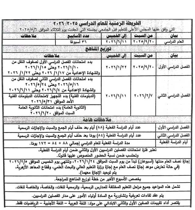 - امتحانات الثانوية العامة 2026 : من السبت 20 يونيو 2026
