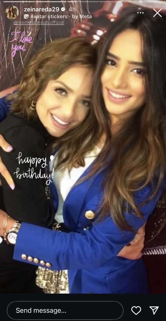 وحرصت زينة على تهنئة ريم البارودي عبر حسابها على انستجرام، وكتبت: “عيد ميلاد سعيد”.