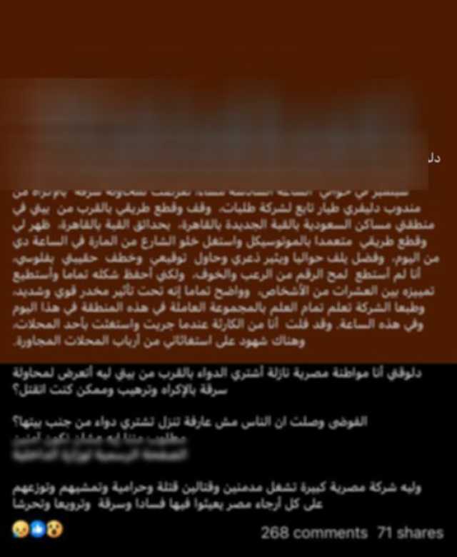 بالفحص تبين عدم ورود ثمة بلاغات فى هذا الشأن ، وبإجراء التحريات وجمع المعلومات تبين عدم صحة ما تم تداوله ، وأمكن تحديد القائمة بالنشر (مقيمة بدائرة قسم شرطة الأميرية بالقاهرة) وبسؤالها أقرت بإدعائها الكاذب وأنها تعانى من ضائقة نفسية منذ وفاة والدتها ، وقيامها بنشر المنشور على صفحتها بمواقع التواصل الإجتماعى لكسب تعاطف أصدقائها.