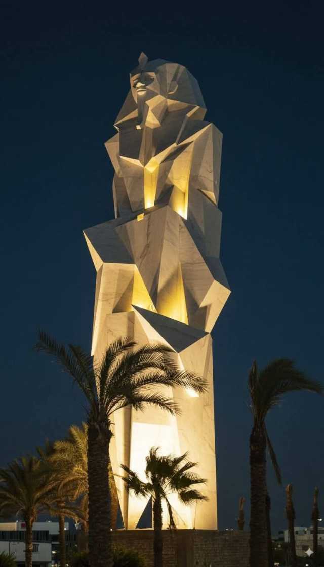 ووصف رواد السوشيال ميديا التمثال بأنه عمل فنى مذهل بارتفاع 27 مترا ويجسد الفن المصرى القديم والفن الحديث.