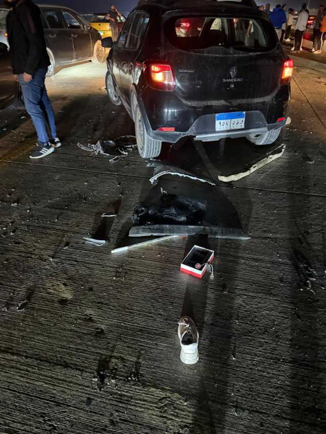 تصادم عدد من السيارات يسفر عن مصرع سيدة وابنتها أعلى الطريق السياحي.. صور