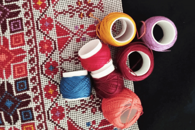 يكمن سر جمال وتميز القطعة المطرزة في اختيار نوع الخيط المناسب لكل قماش، واستخدامه بشكل صحيح، وتتنوع الخيوط في التطريز الفلسطيني لتشمل: