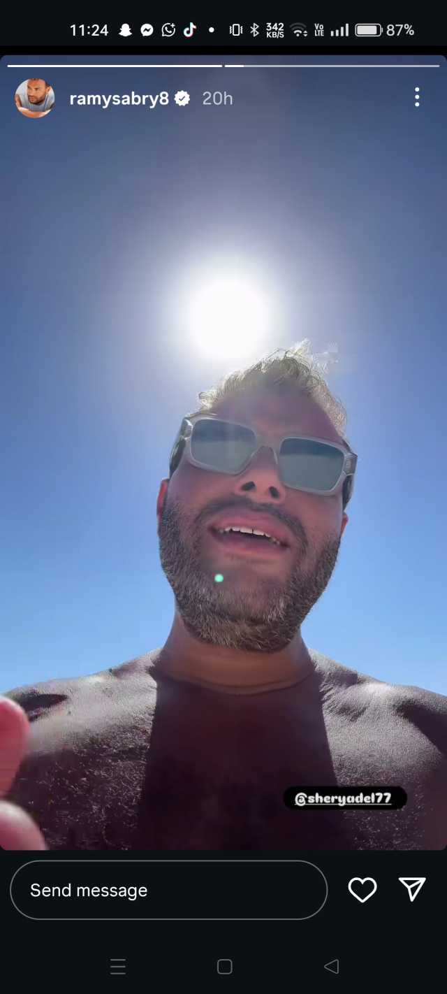 وظهر رامي في الصور من على البحر، في أحدث ظهور عبر إنستجرام.