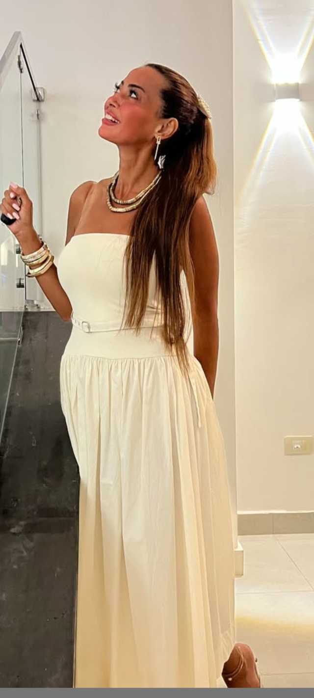 وتألقت داليا مصطفى ، مرتديه فستان طويل وأنيق باللون الابيض ، وجاء الفستان بتصميم كاجوال ليكشف عن جمالها ورشاقتها.