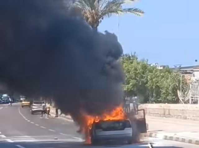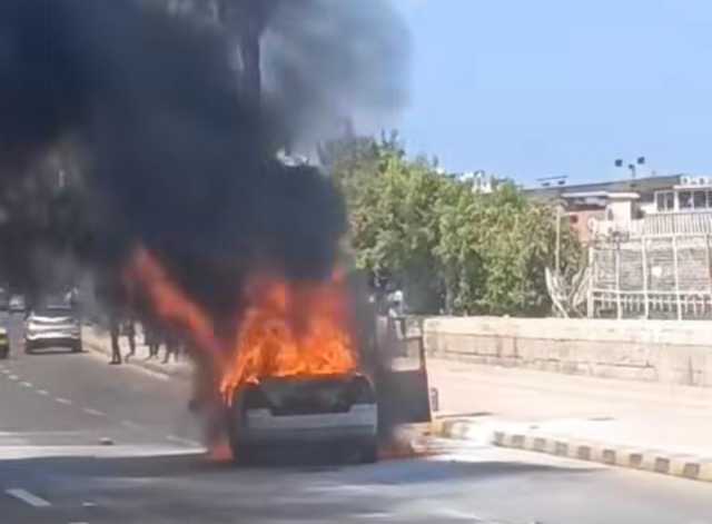 تصاعد ألسنة اللهب والدخان وتفحم المركبة