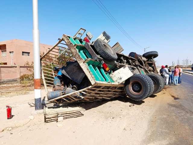 إصابة شخصين في تصادم سيارة نقل محملة باسطوانات البوتاجاز وأخرى ملاكي بأسيوط