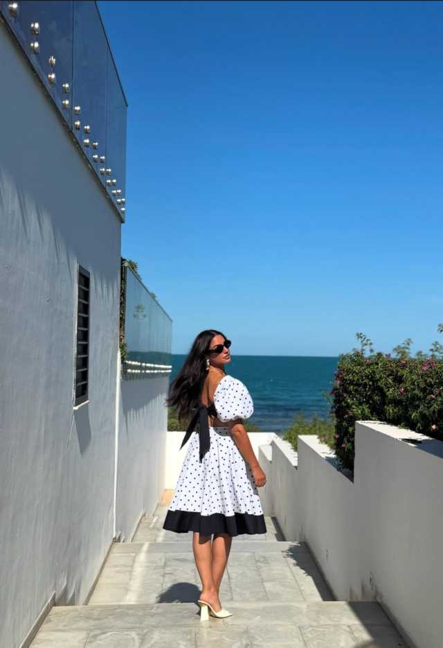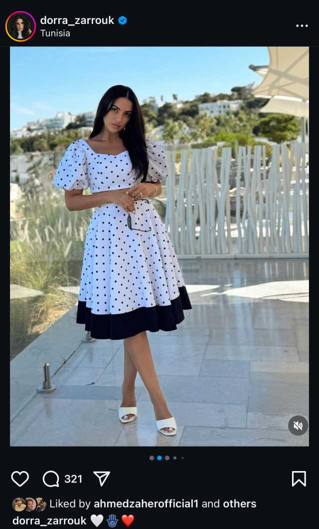 وظهرت درة في الصور التي نشرتها عبر حسابها الرسمي على موقع "إنستجرام" مرتدية فستان صيفي أبيض منقط، مع شعرها المنسدل على كتفيها، ما خطف أنظار المتابعين الذين أثنوا على جمالها وإطلالتها الأنيقة.