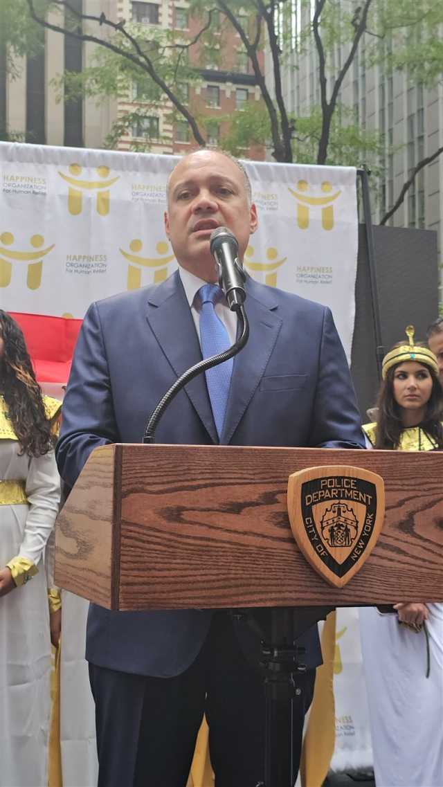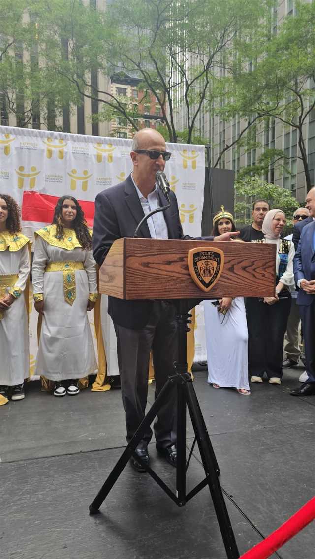 وقد استهلت الفعالية بعزف السلام الوطني المصري والأمريكي وسط حضور جماهيري كبير من أبناء الجالية المصرية والجاليات العربية بالإضافة إلى مشاركة السفير المصري بالولايات المتحدة تامر المليجي وعدد من المسؤولين في شرطة نيويورك وهو ما أضفى على الحدث طابعًا رسميًا ورسالة واضحة بأن مصر حاضرة دائمًا مع أبنائها في الخارج.