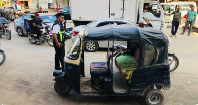 وخلال مروره بشارع عبد السلام عارف، لاحظ المحافظ سير أحد مركبات التوك توك، وعلى الفور أصدر توجيهاته لإدارة المرور بضبط المركبة والتحفظ عليها، مشددًا على تكثيف الحملات المرورية لمتابعة التزام سيارات السرفيس بخطوط السير المحددة، فضلًا عن التزام سيارات الأجرة "التاكسي" بالتعريفة الرسمية.