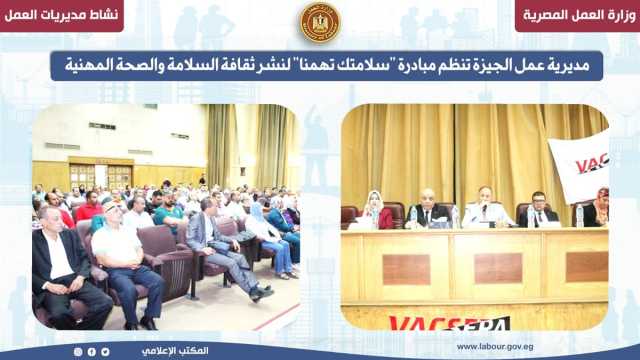 وأوضح محمد رمضان مدير مديرية العمل بالجيزة أن المبادرة تأتي تنفيذًا لتوجيهات وزير العمل محمد جبران، وبتنسيق مع محافظة الجيزة، مؤكدًا أن المديرية تعمل على تعزيز التعاون مع مختلف الجهات الحكومية والقطاع الخاص لنشر التوعية وتحقيق بيئة عمل لائقة وصحية.