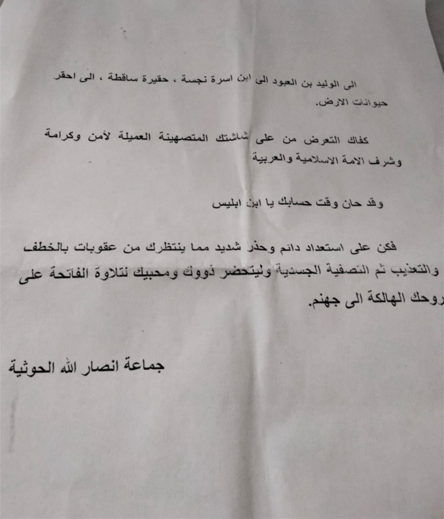 تعرّض مدير الأخبار في قناة mtv الاعلامي وليد عبود للتهديد بالتصفية والقتل حيث تم تعليق ورقة في المبنى الذي يقيم فيه تتضمن تهديدا مباشرا له ولقناة MTV حملت توقيع جماعة انصار الله الحوثية.