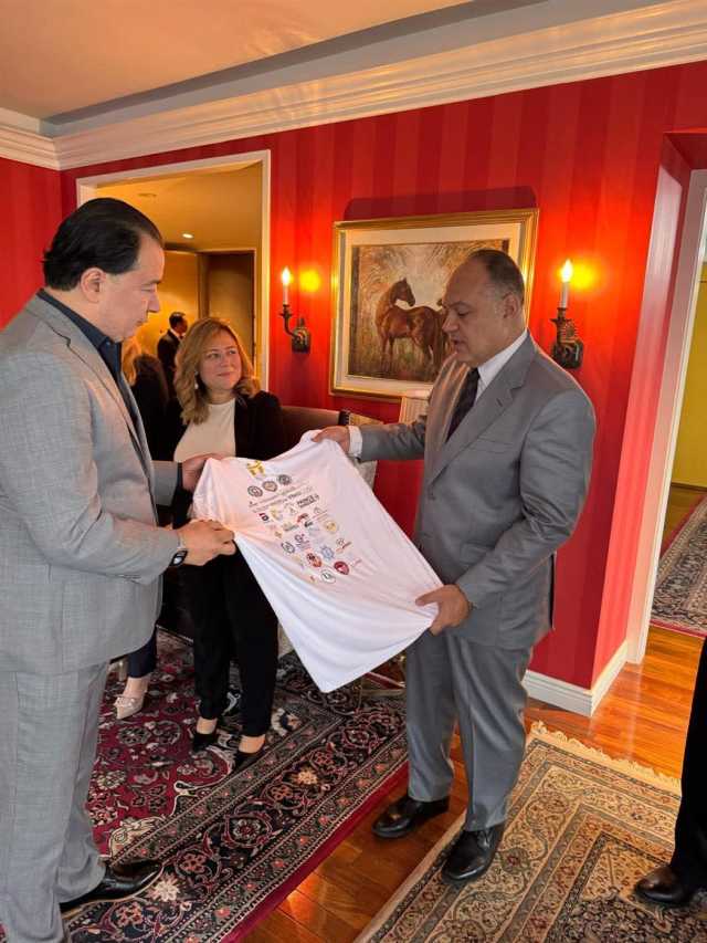 وخلال الاحتفال، قدّم ياسر نور الدين، رئيس احدى المؤسسات الخيرية بنيويورك، تيشيرت "اليوم المصري" كإهداء رمزي للسفير، تعبيرًا عن روح الانتماء والاعتزاز بالهوية الوطنية، مؤكّدًا أن "اليوم المصري" بات منصة تجمع أبناء الجالية بروح مصرية أصيلة في قلب نيويورك.