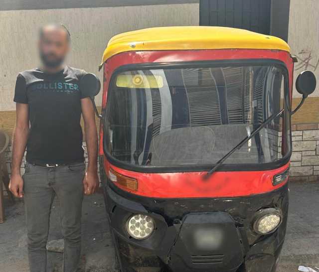 تم التحفظ على مركبة "التوك توك" وإتخاذ الإجراءات القانونية حيال قائدها.