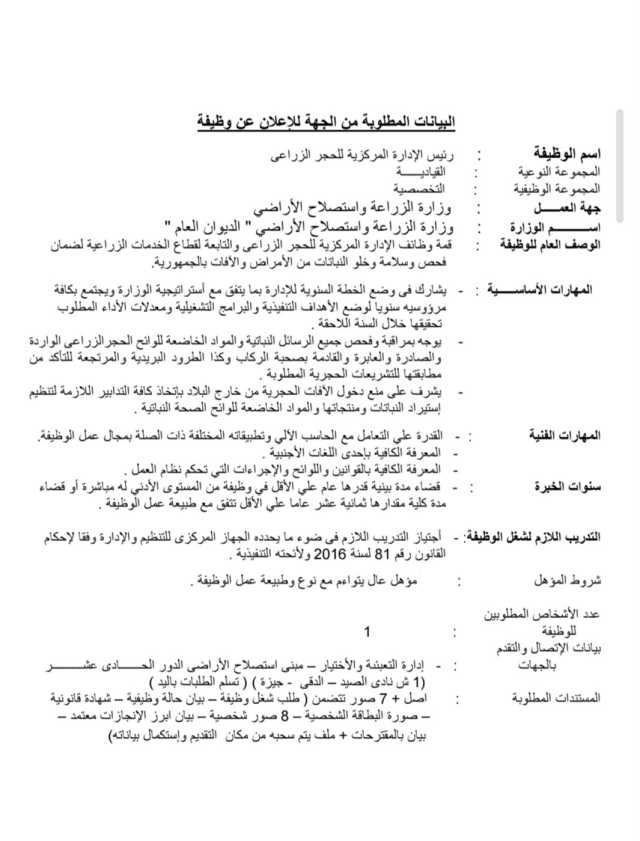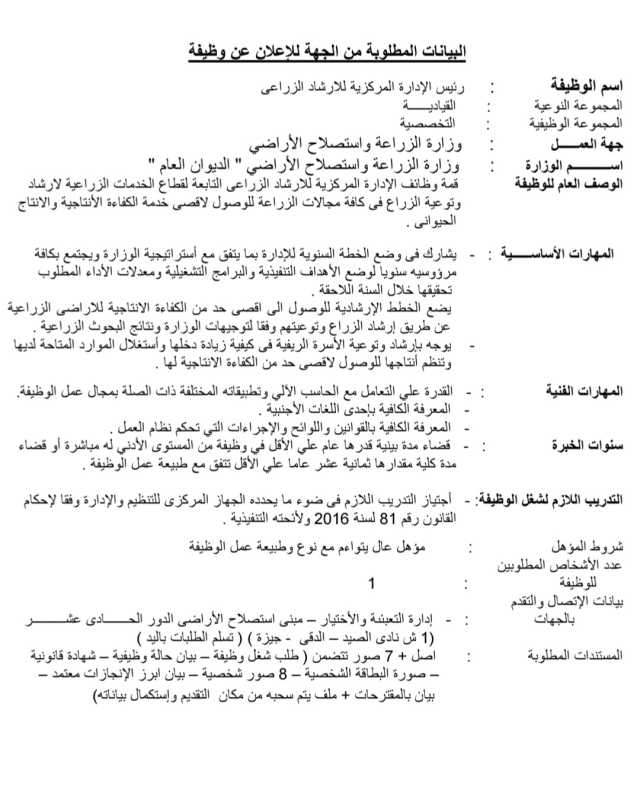 الزراعة تعلن عن إجراء اختبارات لشغل مناصب قيادية بها