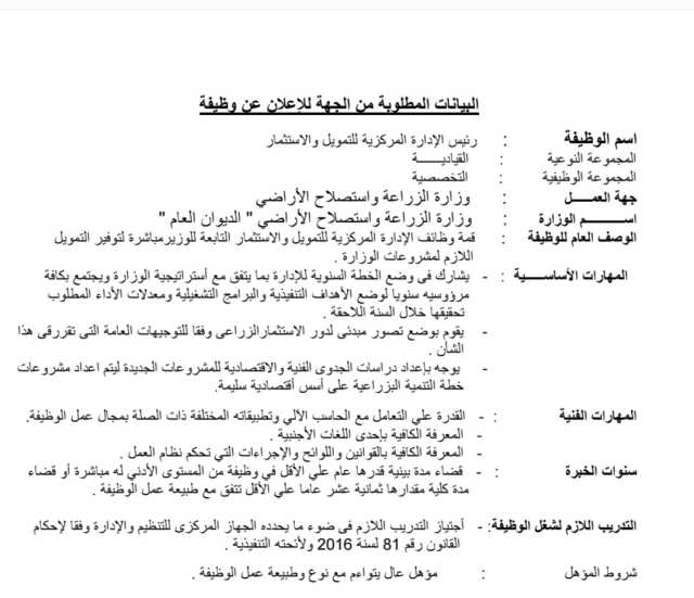 و سيتم إجراء الاختبارات على ١٠ مناصب لشغل رؤساء إدارة مركزية و هي :