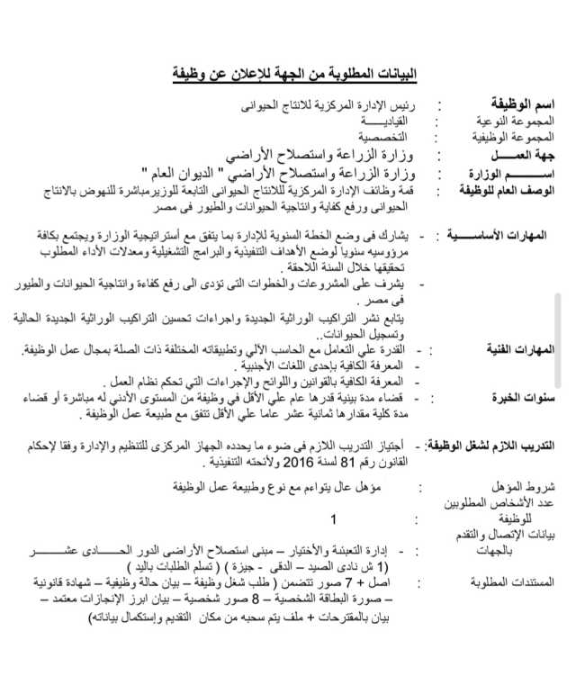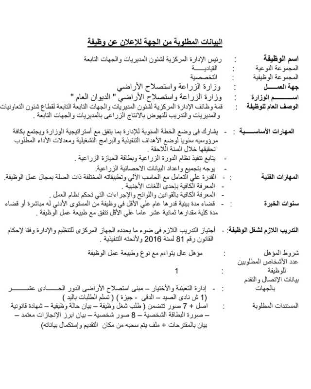 أعلنت وزارة الزراعة واستصلاح الأراضي عن اجراء اختبارات لشغل مناصب قيادية للوزارة فى إطار إعادة هيكلتها و ضخ دماء جديدة بقطاعاتها .