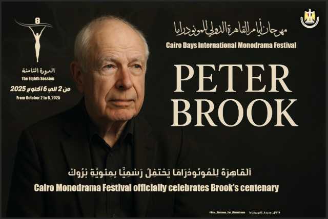يحتفي مهرجان أيام القاهرة الدولي للمونودراما في دورته الثامنة بالذكرى المئوية لميلاد المخرج المسرحي العالمي بيتر بروك، أحد أبرز رموز المسرح في القرن العشرين، والذي وُلد في 21 مارس 1925 ورحل في 2 يوليو 2022، والتي من المقرر انطلاقها خلال الفترة من 2 إلى 6 أكتوبر المقبل.