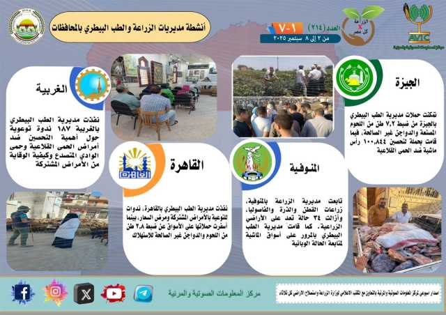 إنفوجراف.. أنشطة وجهود مديريات الزراعة والطب البيطري خلال أسبوع