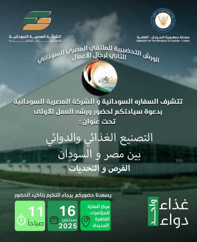 وأوضح بيان صادر عن السفارة السودانية بالقاهرة والشركة المصرية السودانية للتنمية والاستثمارات المتعددة، أن تنظيم فعاليات النسخة الثانية من الملتقى المصري السوداني الثاني لرجال الأعمال، ستتبدأ خلال شهر ديسمبر من العام الجاري بالقاهرة وذلك بالتعاون مع عدد من الشركاء والخبراء والمتخصصين وأصحاب الأعمال في البلدين.