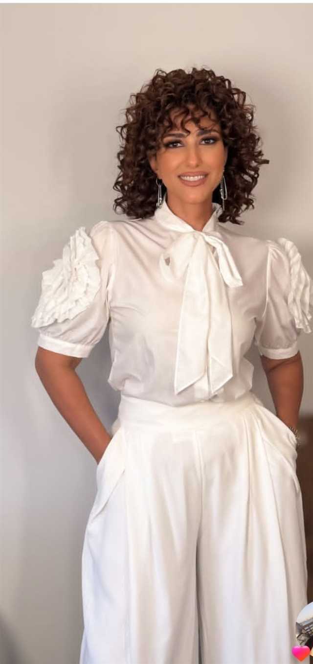 و خطفت حنان مطاوع الأنظار اثناء تجولها في شارع المعز لدين الله الفاطمي و خضوعها جلسه تصوير جديد، مرتديه قميص ابيض مميز التصميم مع بنطال أنيق بنفس اللون لتعكس قوامها الرشيق ووزنها المثالي، لتشبه زهرة الصفاء.