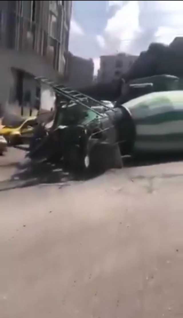 بالصورة.. انقلاب شاحنة باطون في الفنار