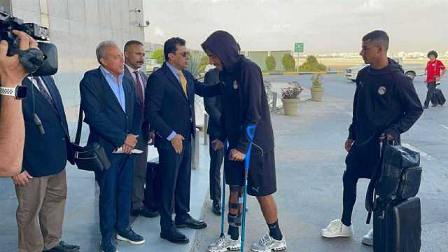 ظهر عمر مرموش جناح منتخب مصر ومانشستر سيتي الإنجليزي وهو يستخدم العكاز أثناء عودة بعثة منتخب مصر من بوركينا فاسو.
