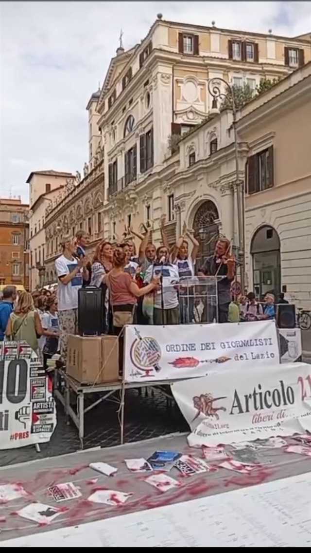 نُظّمت الفعالية في ساحة كامبيدوليو التاريخية وسط العاصمة، بمشاركة المئات من الصحفيين والإعلاميين الإيطاليين ومراسلي الصحافة الأجنبية، يتقدمهم رئيس نقابة الصحفيين الإيطاليين، كارلو بارتولي إلى جانب عدد من الشخصيات العامة ومشاهير الإعلام. ورفع المشاركون لافتات تطالب بتوفير حماية دولية عاجلة للصحفيين في مناطق النزاع، معبّرين عن إدانتهم المتكررة لسياسة الاستهداف الممنهج التي تتبعها إسرائيل بحق الإعلاميين، في خرق واضح لكل الأعراف والقوانين الدولية.