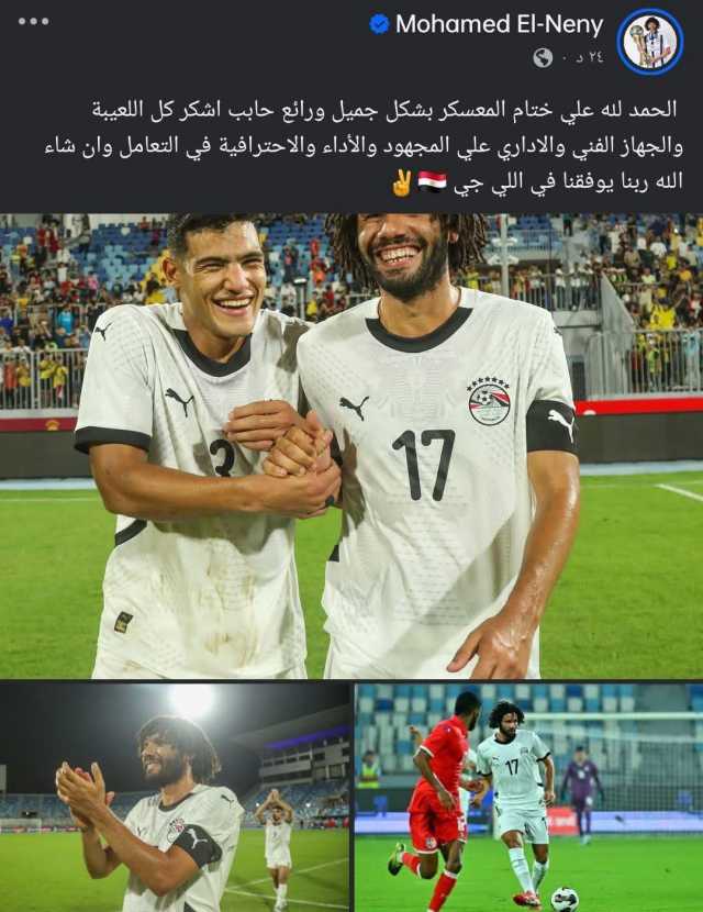 وجه اللاعب محمد النني رسالة شكر للاعبي المنتخب والجهاز الفني بعد نهاية معسكر منتخب مصر عبر حسابه على موقع التواصل الاجتماعي فيسبوك.