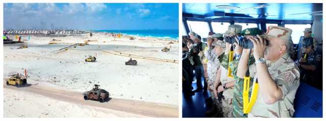 كما قامت عناصر القوات البرية بتنفيذ أعمال التأمين وصد الإبرار البحرى المعادى ، وأظهرت الأنشطة المستوى الراقى للقوات ومدى قدرتها على تنفيذ المهام بأساليب إحترافية فى أزمنة قياسية وبدقة عالية.
