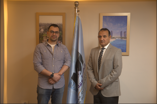 العميد حاتم محمد عبد الحميد مدير عام المدارس الفنية بالهيئة العربية للتصنيع مع كريم الخطيب محرر صدى البلد