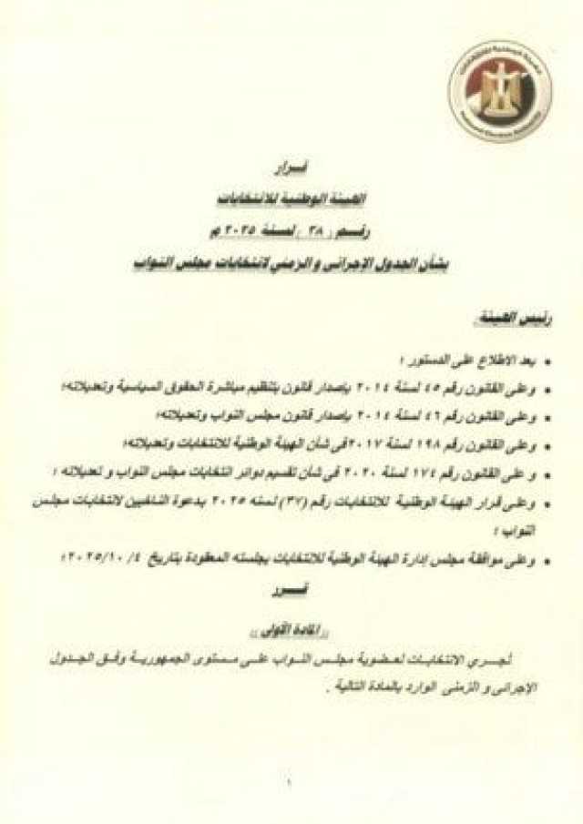 الجدول الزمني لجولة الإعادة بالمرحلة الأولىويتضمن الجدول الزمني لجولة الإعادة بالمرحلة الأولى لـ انتخابات مجلس النواب 2025 أن تقدم الطعون على نتائج الجولة الأولى خلال 48 ساعة من إعلان النتيجة، وذلك بحد أقصى 20 نوفمبر المقبل، حسبما أعلن رئيس الهيئة الوطنية للانتخابات.