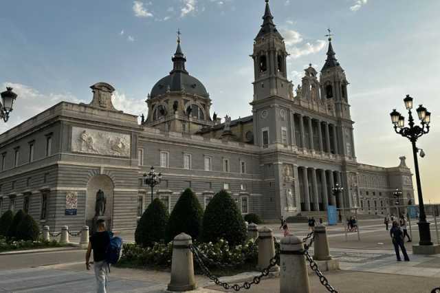 ومقابل بوابة القصر تماما، تقع كاتدرائية ألمودينا، والتي تعتبر المقصد الديني الرئيس لمدريد، والتي بدأ إنشاؤها عام 1883 بإشراف من الملك ألفونسو الثاني عشر لتكون قبرا لزوجته، لكن افتتاحها تأخر حتى عام 1993، وذلك لأسباب عدة منها وفاة المهندس، والحرب الأهلية الإسبانية، ونقص التمويل.