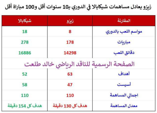 وكتب الدردير عبر فيسبوك:"أحمد سيد زيزو يعادل رقم شيكابالا في المساهمات في أهداف في الدوري رغم أن زيزو لعب 10 سنوات أقل ، ولعب 100 مباراة أقل".