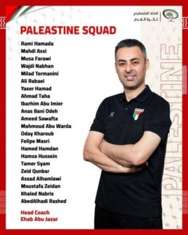 اعلن إيهاب أبو جزر، المدير الفني للمنتخب الفلسطيني، قائمة الفدائي خلال معسكر شهر أكتوبر الجاري، والذي سيخوض خلاله المنتخب مباراتين أمام منتخب الجزائر للمحليين يومي 9 و13، ضمن استعداداته لخوض مباراة ليبيا في تصفيات كأس العرب 2025.